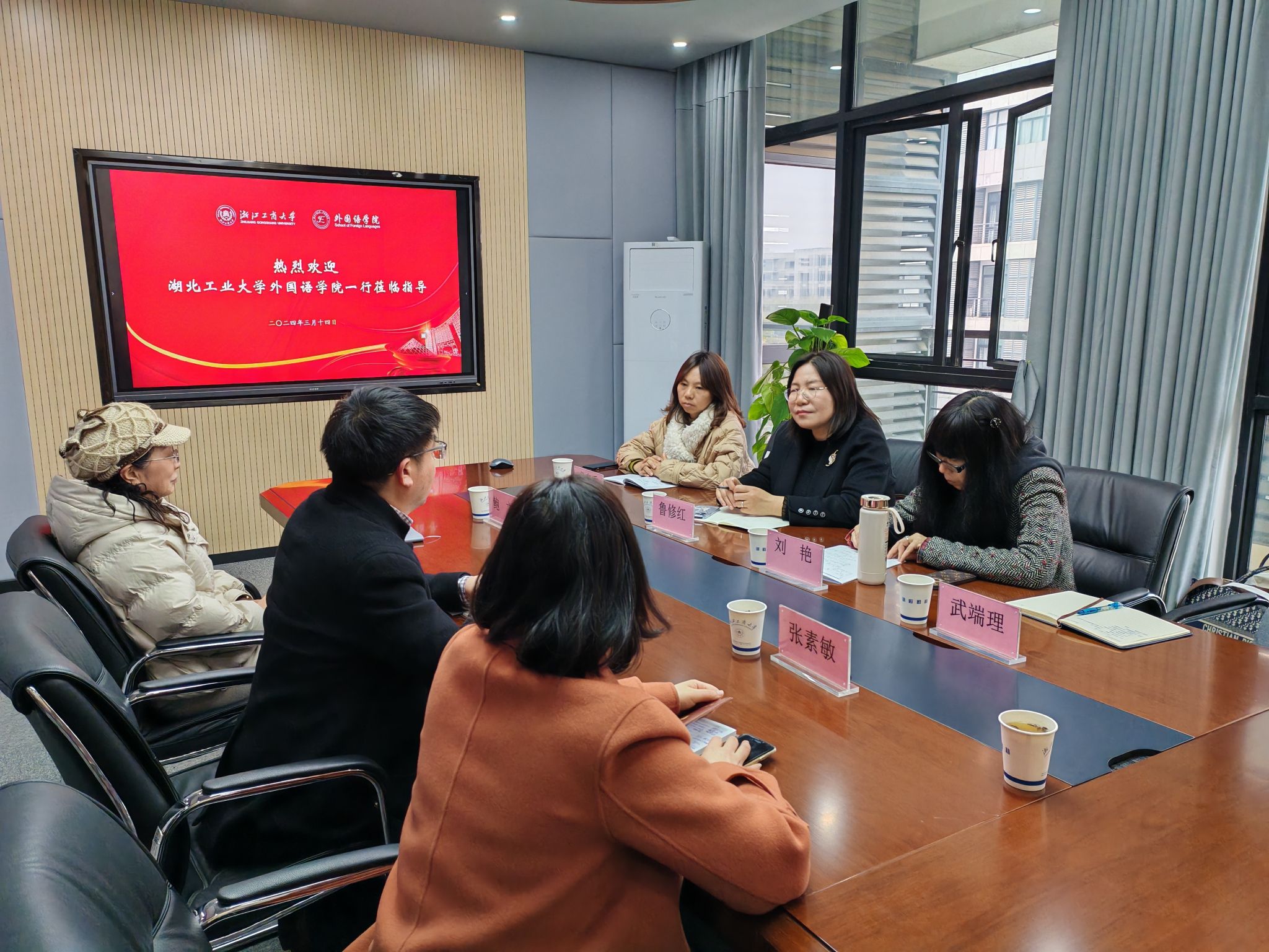 为推动学科建设的固本求新,切实做好本科人才培养方案和课程大纲修订工作,3月14日,学院院长鲁修红一行4人赴浙江工商大学乐竞(中国)一站式服务官网进行调研学习。浙江工商大学乐竞(中国)一站式服务官网院长李丹弟、商务英语系主任鲍文、英语系主任张素敏热情接待了我院调研团队。