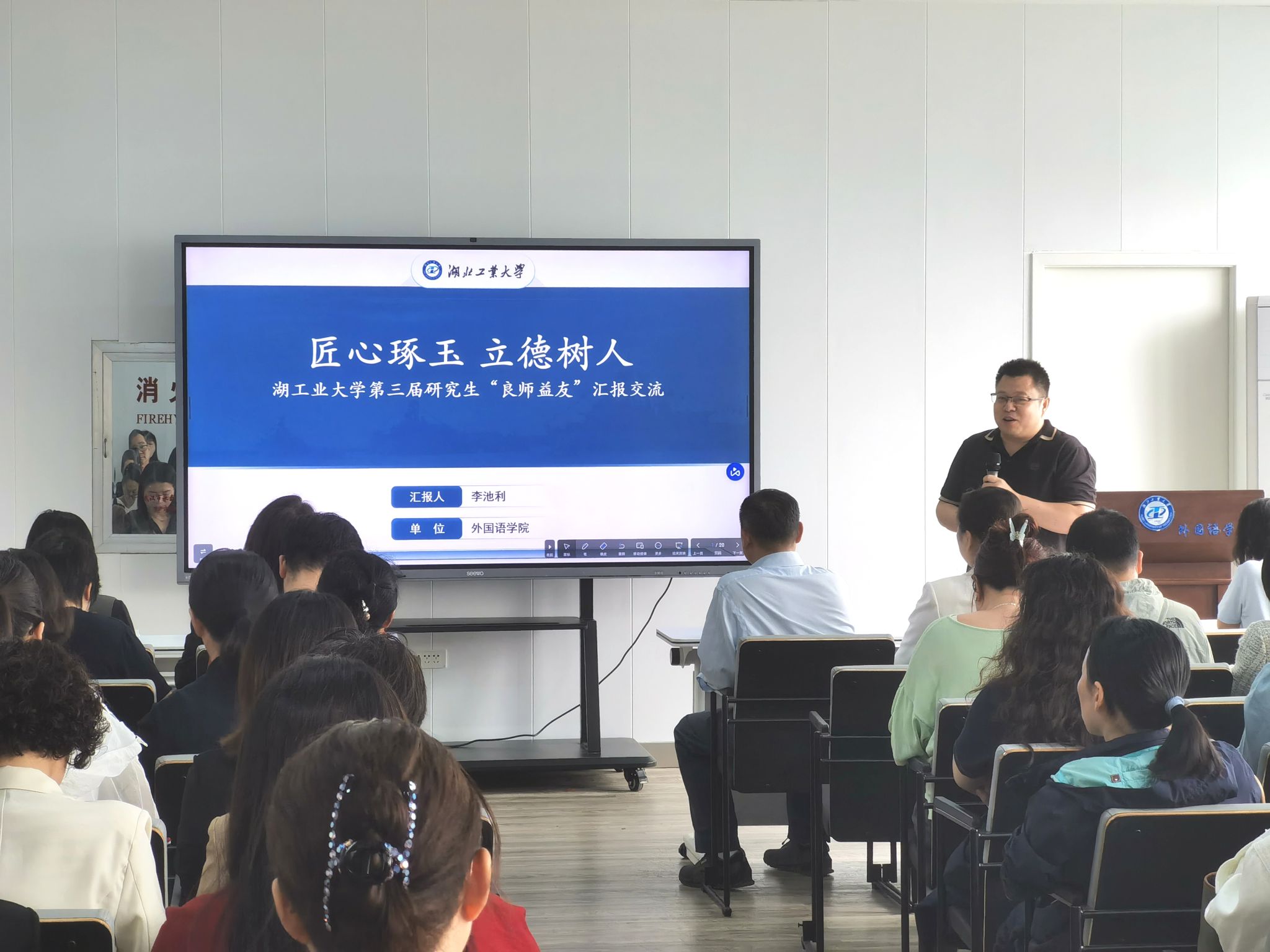 接着,2025年被评为最受学生欢迎的张莉老师围绕“课程教学诊断”进行了教学育人故事分享,通过学情分析、问题发现与对策调整,让学习有 “吸引力” 与 “方向感”,让学生感受到“被关注”,增强学习的归属感。被评为湖北工业大学第三届研究生“良师益友”的李池利老师以“匠心琢玉 立德树人”为主题分享了自己的育人故事。他从“以德为舟、铸魂育人”“初心如磐、育人以恒”方面厚植育人沃土,绽放五育繁花。所指导的研究生思想品质好、学业水平高、学位论文质量优、创新实践与学科竞赛强、毕业生就业质量高。李池利老师多次被评为校级和院级的“优秀班导师”和“优秀研究生导师”,2018年被评为湖北工业大学“师德标兵”。