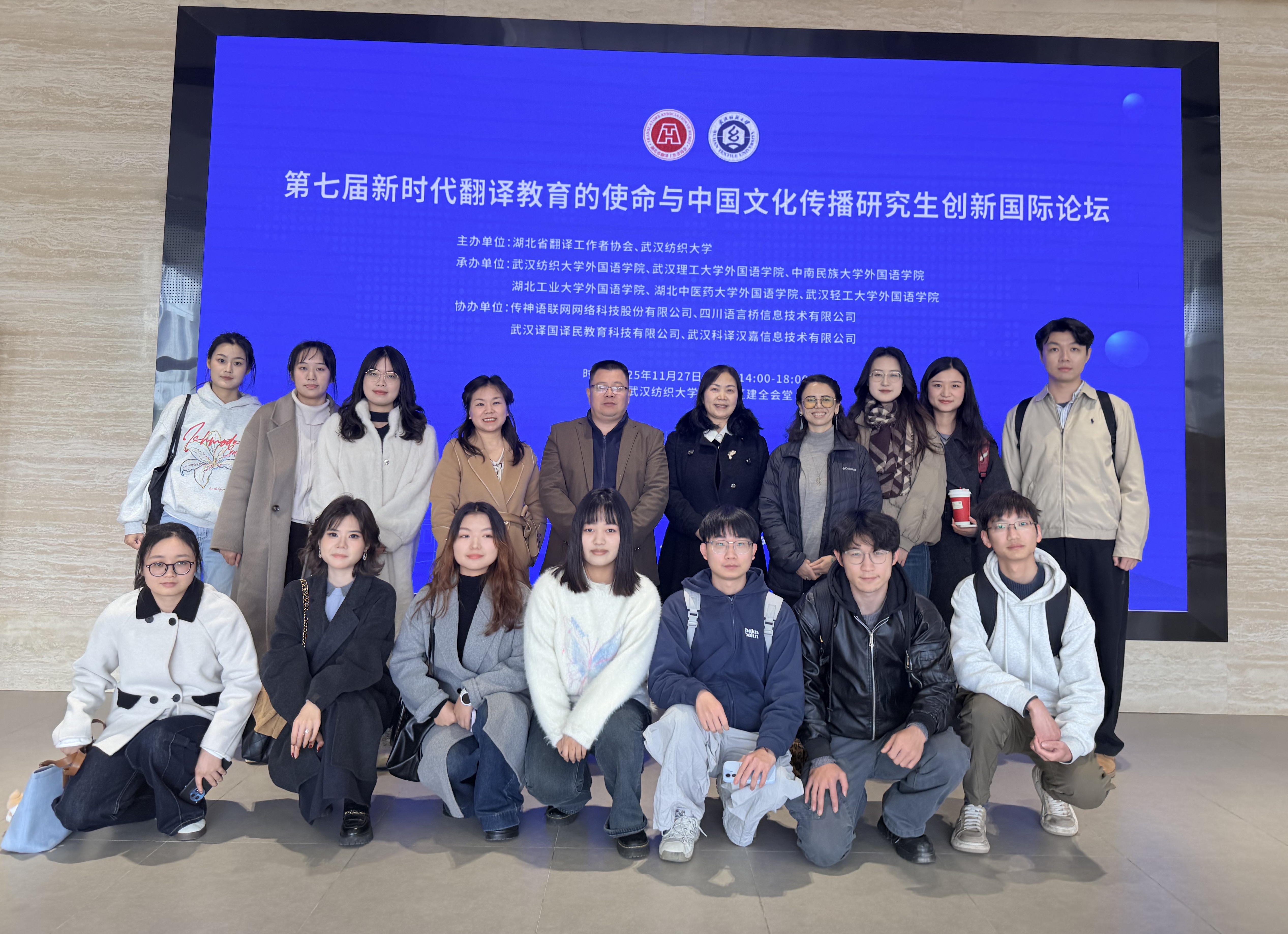 11月27日,由湖北省翻译工作者协会与武汉纺织大学联合主办的“第七届新时代翻译教育的使命与中国文化传播研究生创新国际论坛”在武汉纺织大学顺利举行。作为本次论坛的承办单位之一,乐竞积极组织、深度参与学术交流。院长鲁修红,副院长李池利,MTI中心主任肖家燕、副主任涂慧琴,以及外教Rebecca Yoshikane带队,虞灿、陈诗洋等13名MTI研究生参会,围绕“新时代翻译教育的使命与中华文化传播”这一核心议题,展开多角度、深层次的研讨交流。