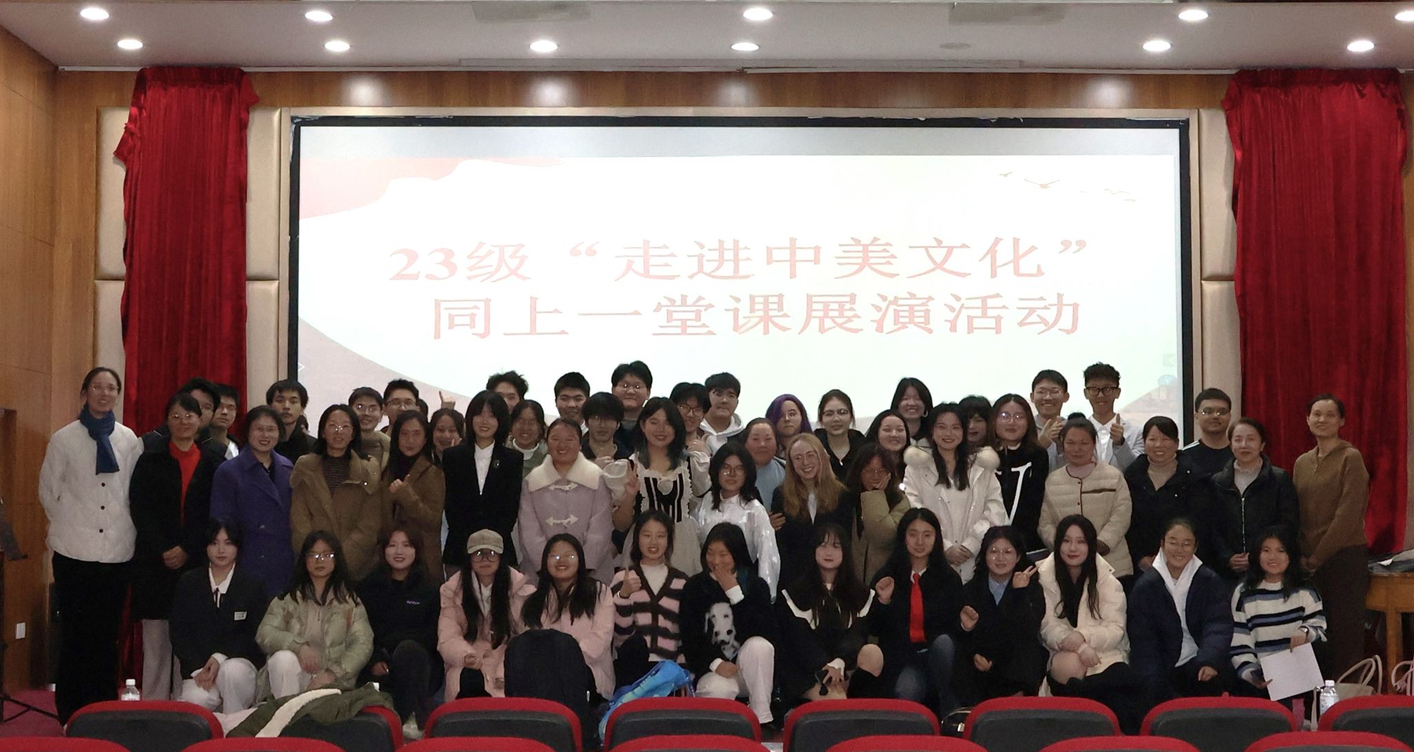 12月16日,在教务处的大力支持下,“走进中美文化”同上一堂课展演活动在博学堂顺利举行。2023级文化班的同学们齐聚一堂,共同沉浸在欢笑与音乐的海洋中,用英语讲述文化,展现课程的创新风采。