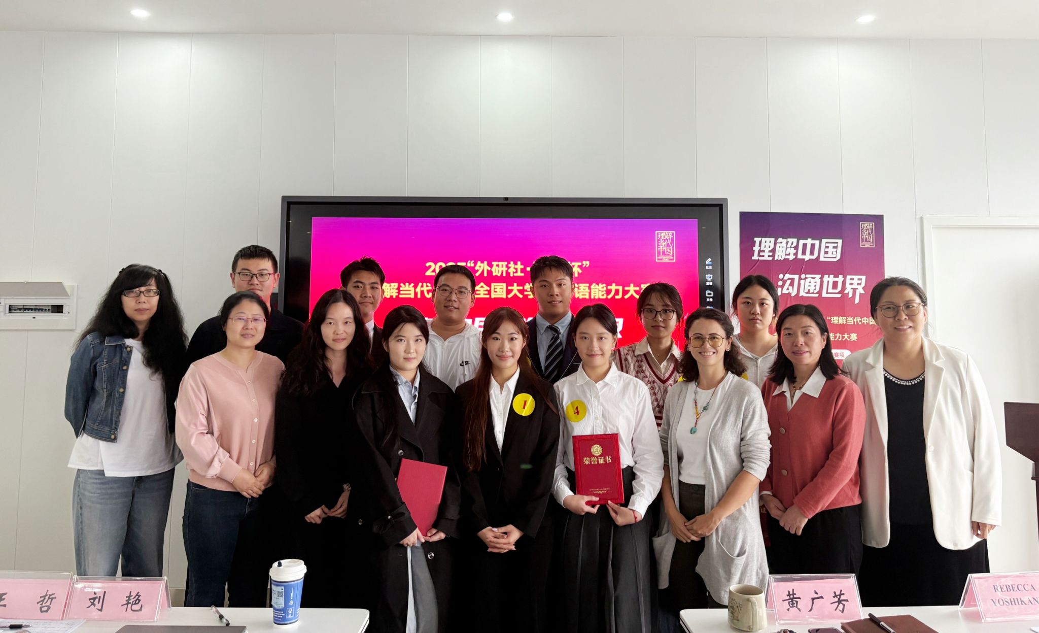 经过激烈角逐,来自2022级创新英语1班的潘芷萱及2024级创新英语1班的郭乐言两位荣获金奖;荣获银奖的选手分别是2023级创新英语1班肖敬羽、2024级创新英语1班周沛玥、2025级外国语言文学郭润洲,以及2024级创新英语1班杨鸣。荣获铜奖的选手分别是2023级数媒1班周楚皓、2024级产品设计2班严雅怡,以及2024级国贸1班余芙蓉。最后,外籍教师Becky对比赛做了点评,她高度赞扬选手们的精彩表现,并希望大家能够基于中国发展的美好现状,大胆展开想象,创造自己的故事。